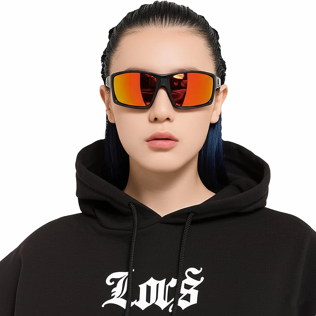 Com lentes espelhadas abelha policromáticas UV400, ele oferece proteção completa contra os raios solares, além de um visual moderno e impactante. A armação média e curvada no tamanho M, somada às lentes médias, garante conforto e versatilidade para o uso diário ou atividades ao ar livre.